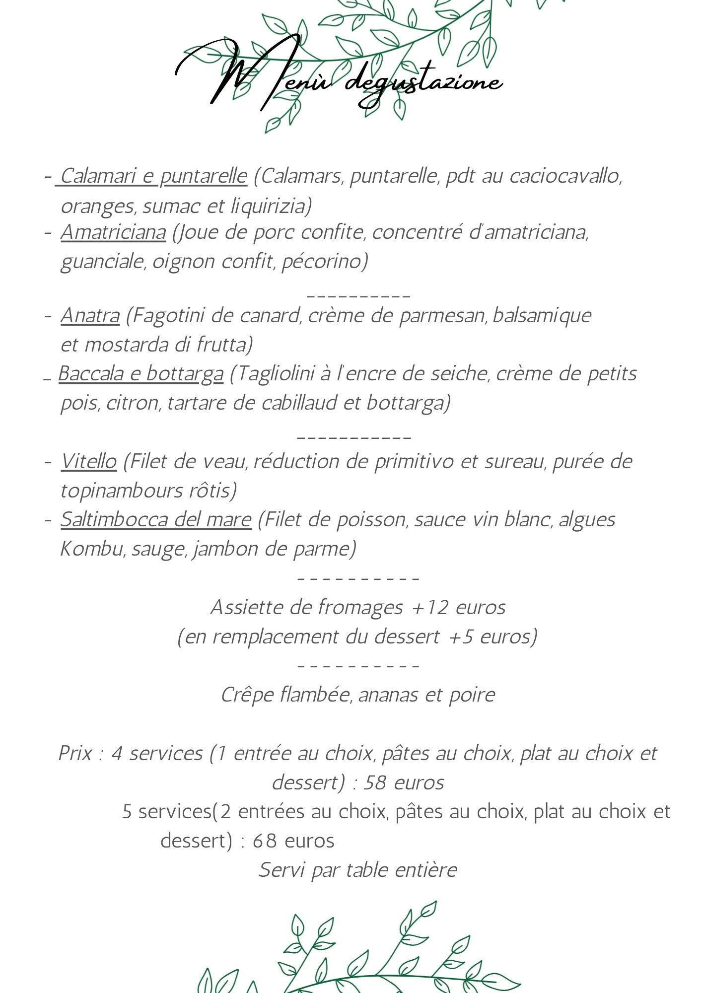 Reçu comme des rois par un patron enthousiaste et la patronne aux fourneaux. Cuisine italienne aux produits frais venant le plus possible des producteurs proches, le tout fait maison. La salle, la terrasse arrière et le jardin offrent de très beaux espaces d'accueil.